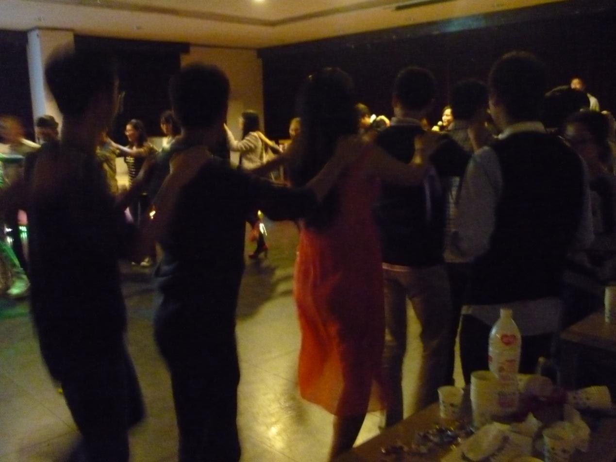 最后,大家双手搭肩,围成一个圈,随着欢快的节奏同时起舞,在温暖而幸福的氛围中结束了本学期研究生的第一次舞会。