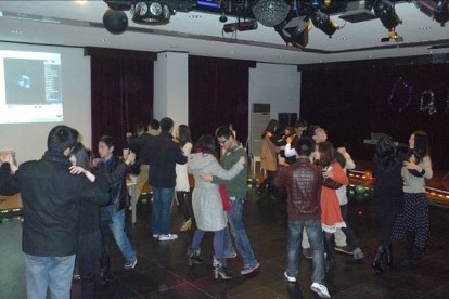 舞会别出心裁,安排大家按星座属性就座,给同学们提供结识新朋友的机会。当晚六点,一段富有张力的恰恰舞表演之后,四位主持人宣布舞会正式开始。在专业舞蹈老师的指导下,同学们边学边跳,渐渐褪掉了最初的生涩,伴着优雅的华尔兹旋律,翩翩起舞。前进、滑步、旋转,虽然舞姿不尽专业,但是同学们热情高涨,不愿错过今宵的美好时光,舞动年华,一秀风采。